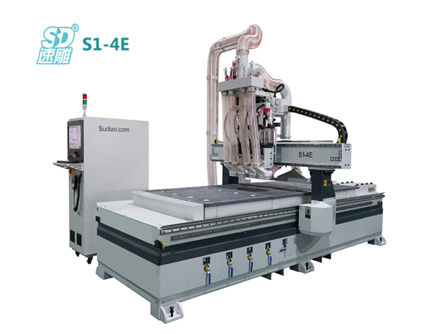 目前應(yīng)用比較廣泛的木工加工中心有兩款,一款是直排換刀加工中心,一款是圓盤換刀加工中心。直排換刀加工中心,是一個(gè)主軸加一個(gè)直排跟隨式刀庫(kù),一般標(biāo)配12把刀,自動(dòng)換刀,能夠滿足柜體打孔開(kāi)料以及柜門雕刻等工藝,性價(jià)比比較高,比較受中小型家具廠的歡迎。圓盤換刀加工中心是一個(gè)大功率主軸和一個(gè)圓盤式刀庫(kù),一般圓盤換刀加工中心整體配置要比直排換刀加工中心高,尤其是電機(jī)這塊,因此加工精度也相對(duì)高一些。不管是選擇直排換刀加工中心還是圓盤換刀,都是要根據(jù)自身生產(chǎn)加工需求來(lái)進(jìn)選擇